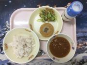 麦ごはん、牛乳、いわコロ、福神あえ、カレー(レトルト)
