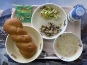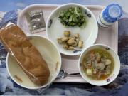 米粉パン、牛乳、いかのハーブ焼き、グリーンサラダ、ちっチャイ菜のポトフ、ココア牛乳の素
