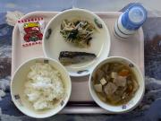 ごはん、牛乳、いわしの生姜煮、ほうれん草のあえもの、けんちん汁、節分豆