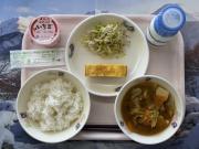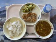 麦ごはん、牛乳、れんこんチップス、福神あえ、カレーライス