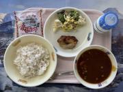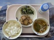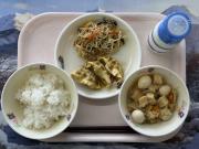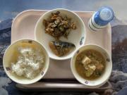 ごはん、牛乳、厚揚げのそぼろあんかけ、小松菜のごまあえ、沢煮わん