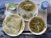 中華めん、牛乳、しゅうまい(小2こ中3こ)、大豆もやしのナムル、いわくらーメン、ぶどうゼリー