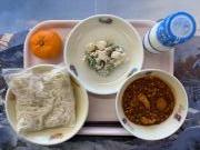 ソフトめん、牛乳、ミートソース、大豆ナゲット、(小2こ、中3こ)、ツナサラダ
