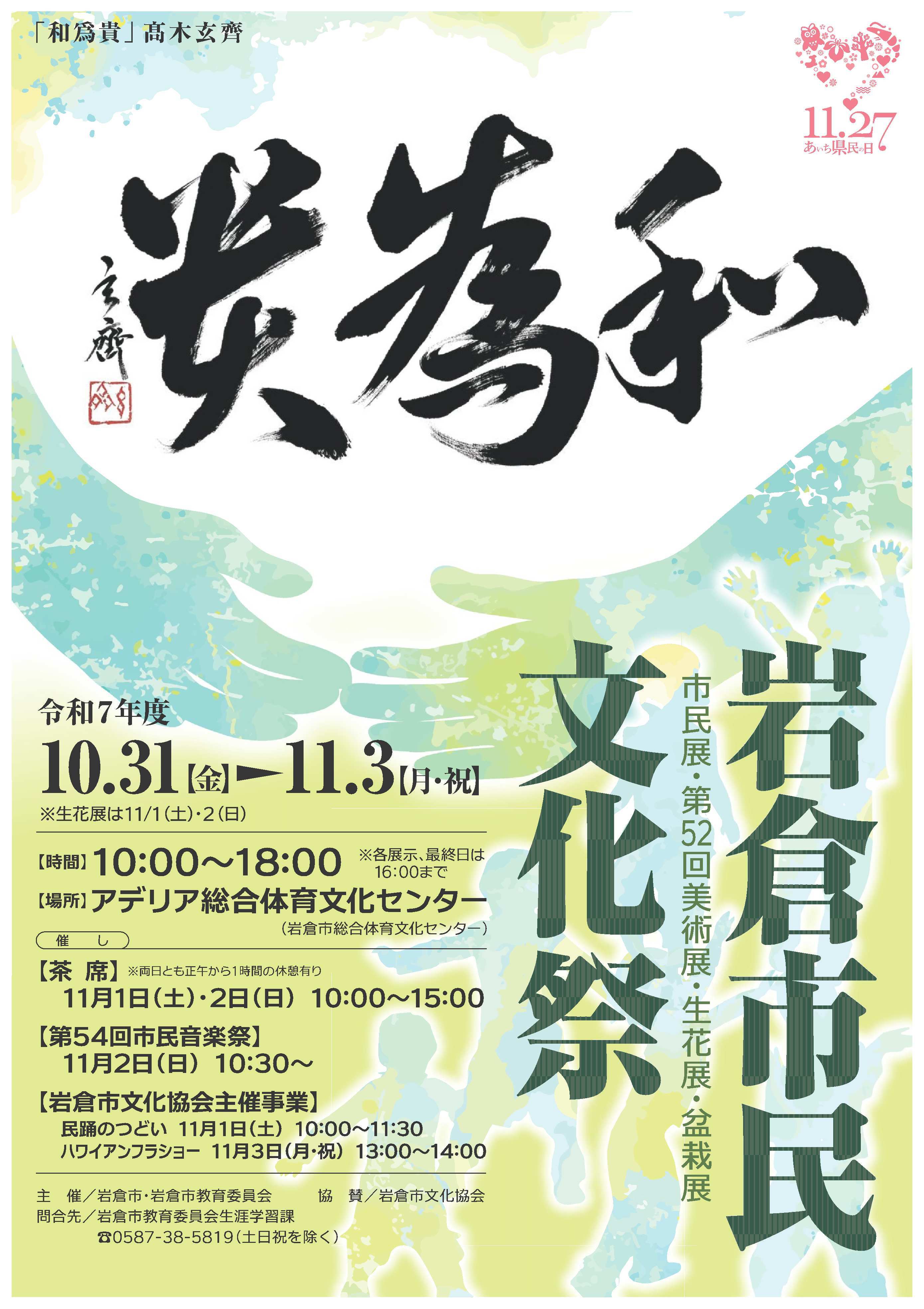 岩倉市の文化祭は、市民が制作した作品を発表する場として、岩倉町の時代から開催しています。