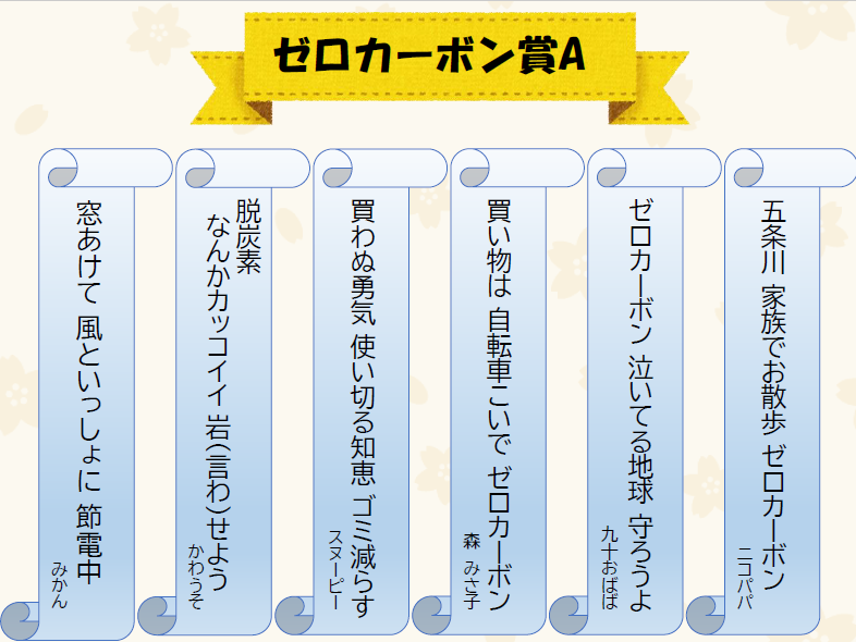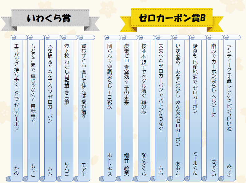 「いわくらゼロカーボン川柳コンテスト」に多くのご応募をいただきありがとうございました。
