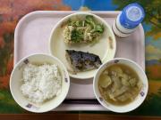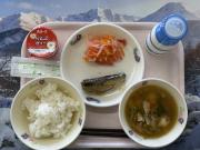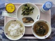 ごはん、牛乳、さばの香味焼き、野菜の梅あえ、い~わくんの健康みそ汁