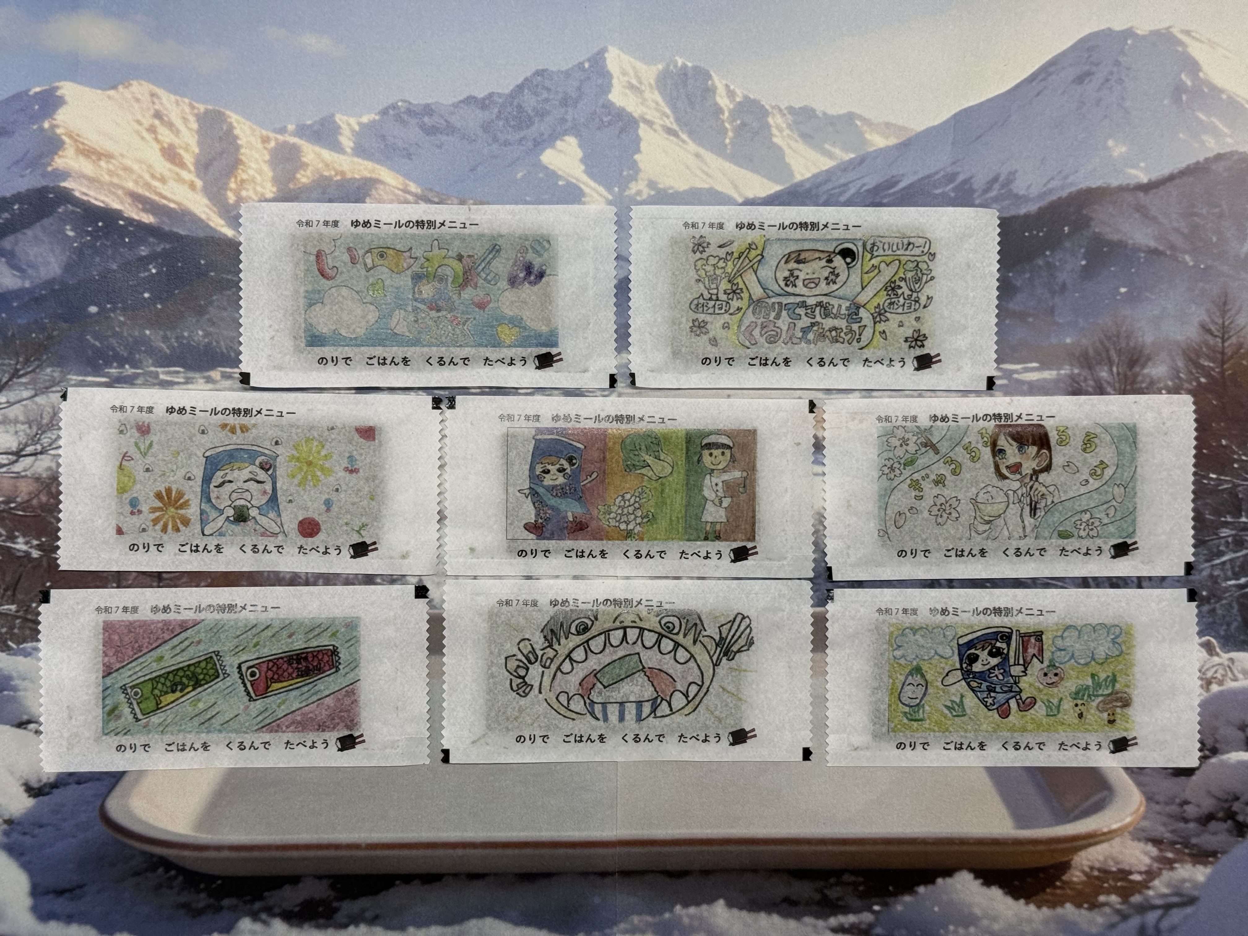 令和7年度に応募のあったイラストが印刷された味付けのりです。