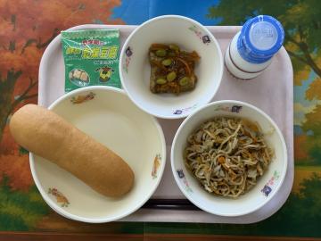 小型ロールパン、牛乳、焼きそば、たちうおの野菜あんかけ、乾燥豆腐