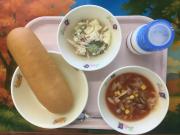 ロールパン、牛乳、ポテトサラダ、ミネストローネ