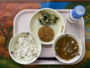 ごはん、牛乳、里芋コロッケ、なめたけあえ、豚汁