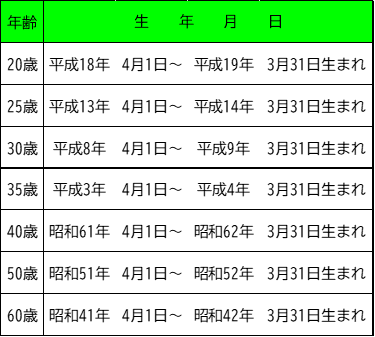 1. 節目(20歳・25歳・30歳・35歳・40歳・50歳・60歳)歯科健康診査の対象者