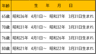 口腔機能(65歳・70歳・76歳・80歳)歯科健康診査の対象者
