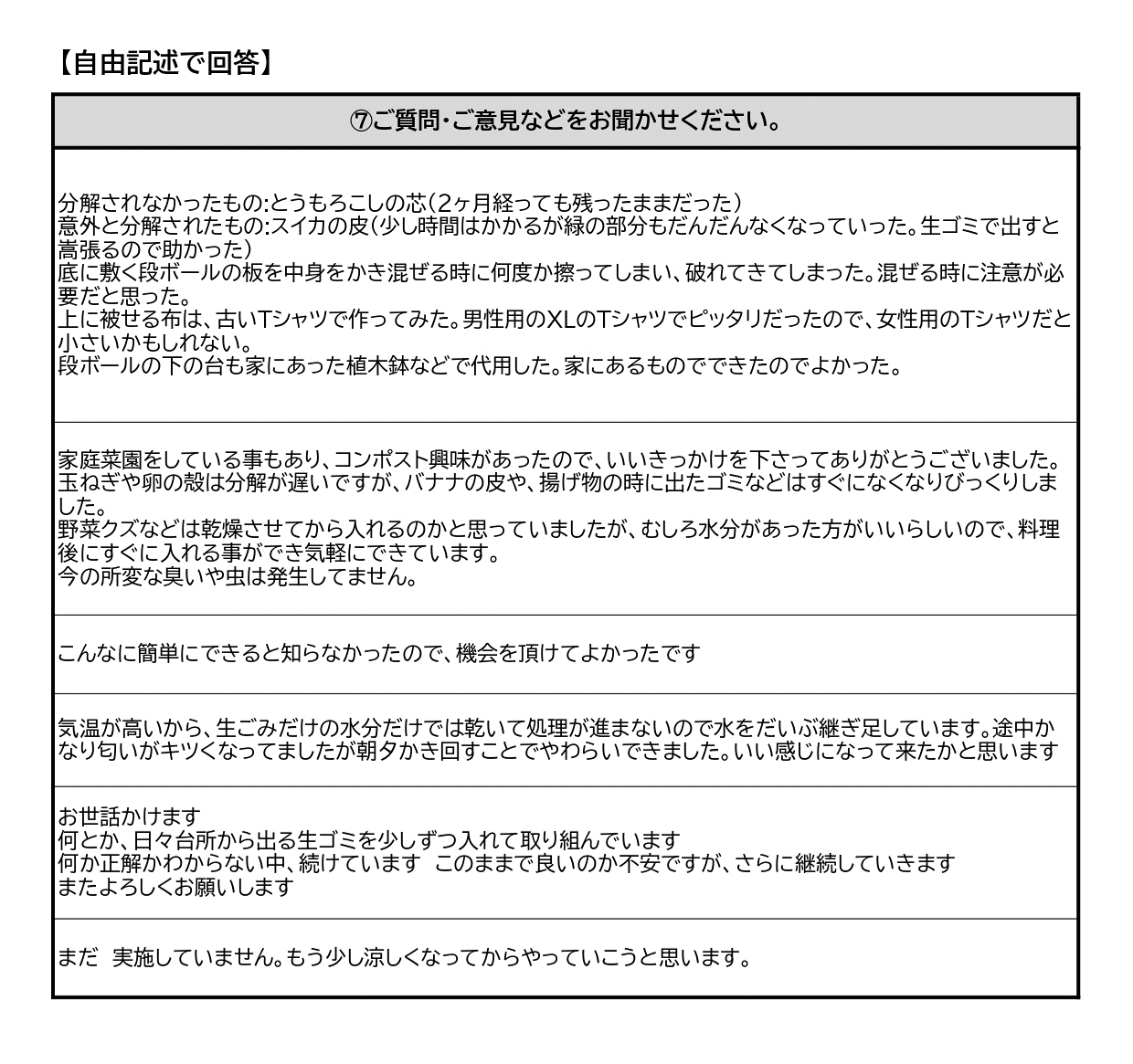 段ボールコンポスト基材を配布した方に、現在の状況をお伺いしました。