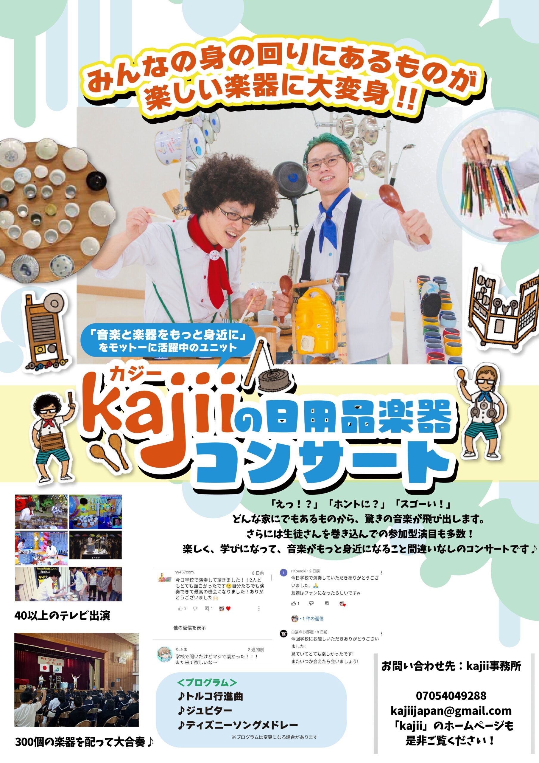 児童館では、kajiiさんによる「kajiiの日用品楽器コンサート~食器は歌う~」を開催します。