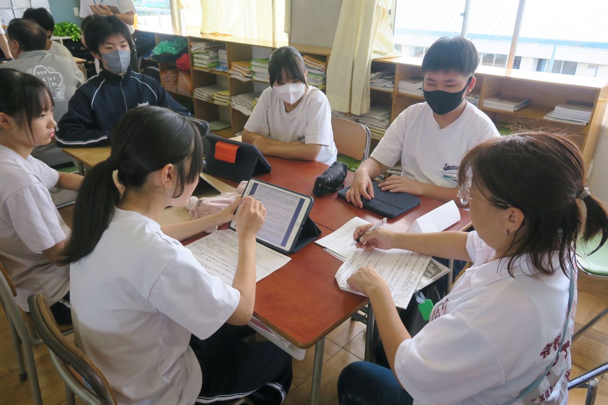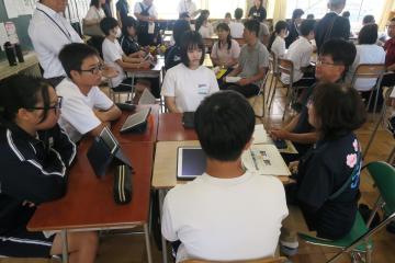 生徒たちは数名のグループに分かれ、それぞれが市の取り組みや子ども条例についてのプレゼンテーションを行いました。グループに加わった議員に向けて、生徒から意見や質問が出され、活発な意見交換となりました。