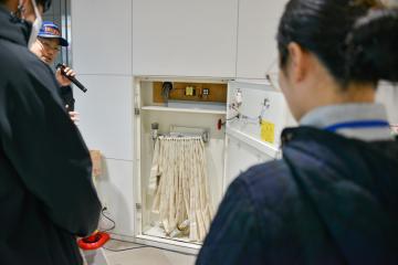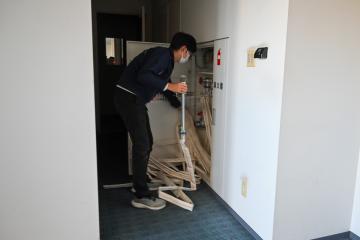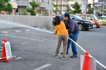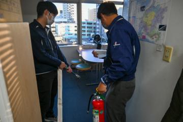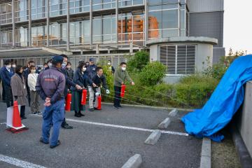 火災が発生した際の初期消火や、通報、避難経路の確認などを行ったのち、消火器や消火栓を使った消火訓練を行いました。