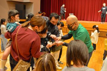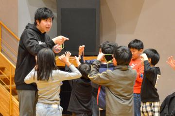 元世界チャンピオンの城戸さんをはじめ、市内にあるヨーヨーショップリワインドさんのスタッフによる指導のもと紐の付け方から初心者向けの技までを分かりやすく教わり、技ができたときには飛び跳ねて喜んでいる子もいました。