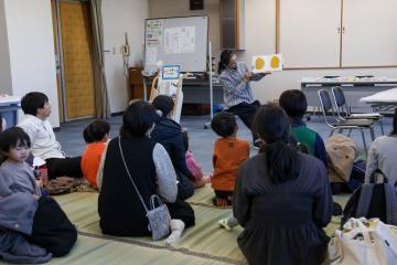 11月22日(土曜日)、図書館で絵本ワークショップ「レオ・レオーニの世界観を楽しもう!」が開催されました。はじめに行われた絵本の読み聞かせで、こどもたちは絵本の世界に引き込まれ、会場は優しい物語の空気に包まれました。