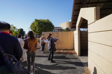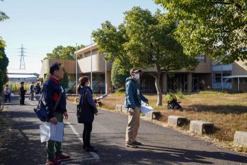 第1回の今回は実際の現場を見て回りました。現地では、建物自体は取り壊すものの、植えてある木やまだまだ使えそうな駐輪場などがあることが分かりました。その後の意見交換では、現地で見た結果を踏まえて、「五条川との接続を良くして水辺で遊べるようになるといいね」や「バーベキューができるようにしたい」などといった意見交換が活発に行われ、新しい公園への夢が膨らんでいきました。