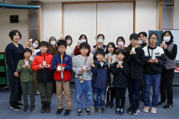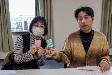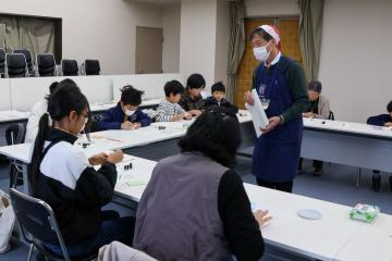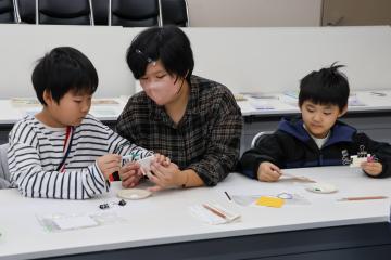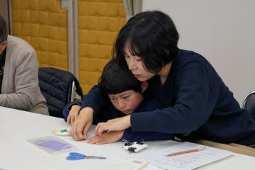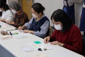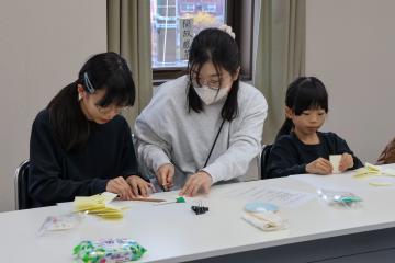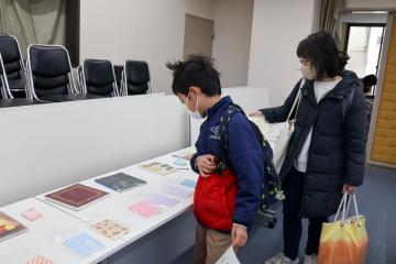 12月20日(土曜日)、図書館で「豆本づくり~本のつくりを知ろう~」が行われました。手のひらに収まるほどの小さな豆本づくりには、こどもから大人まで幅広い世代が参加しました。参加者は、数ある中から好きな柄を選び、折ったり貼ったりと細かな作業を一つ一つ丁寧に進めていきました。完成に近づくにつれて、「本はこうやってできているんだ」と本の構造を学ぶ姿も見られました。