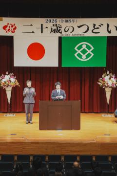 アデリア総合体育文化センターで「二十歳のつどい」が開催されました。