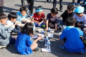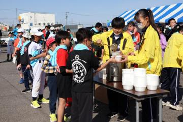 走り終えた参加者には、出来立ての名古屋コーチン汁が振舞われ、「おいしいね」と笑い合いながら味わっていました。